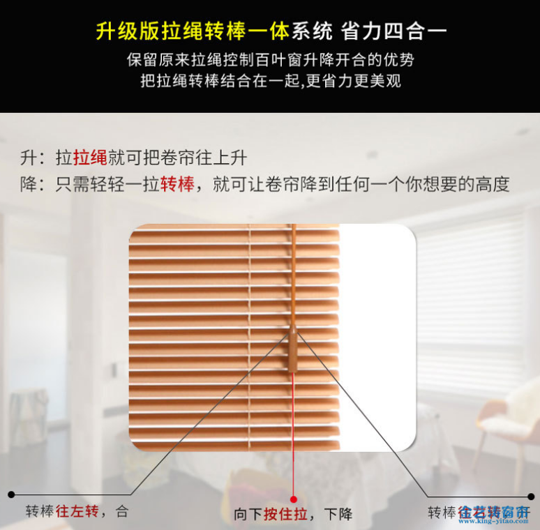 繩棒一體一線通鋁合金百葉-百葉窗簾廠家批發