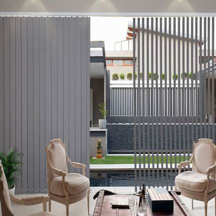 垂直簾因葉片一片片垂直懸掛于上軌而得名,可左右自由調光達到遮陽目的。根據材質的不同,可以分為PVC垂直簾、纖維垂直簾、鋁合金垂直簾和竹木垂直簾。