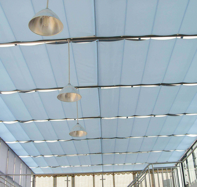 電動天棚簾廠家直銷 陽光房頂棚隔熱FCS折疊天棚簾遮陽篷,