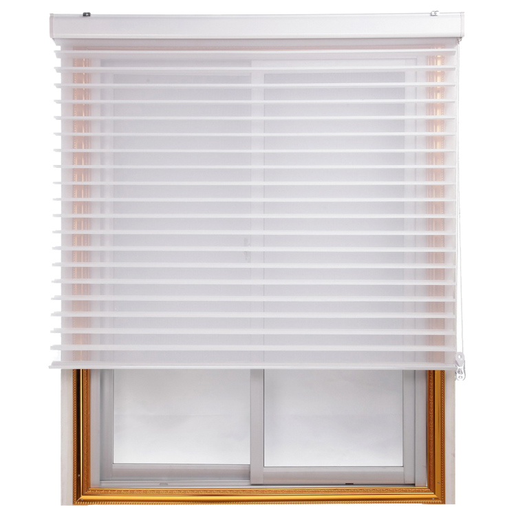 香格里拉簾為一種控光窗簾,這種窗簾具有一對帶多個葉片的平行片材。當窗簾關閉時,葉片基本上平行于成對片材;而在打開時,葉片伸展到基本上垂直于成對片材的位置上。其中,通過紡織或其它工藝使片材和側紗成為一個整體。當全部打開時,兩層薄紗相互垂直平行;這時通過一側紗的高低時,光線會減少射入。兩層薄紗緊貼時,光線全部遮住,繼續(xù)調整窗簾的高度,窗簾則會沿上軸卷起,從而起到良好的控光效果。